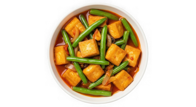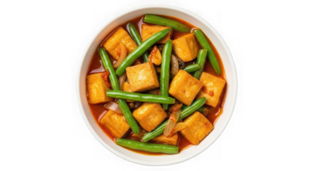 Tofu stir fry food isolated on white background transparent PNG clipart.