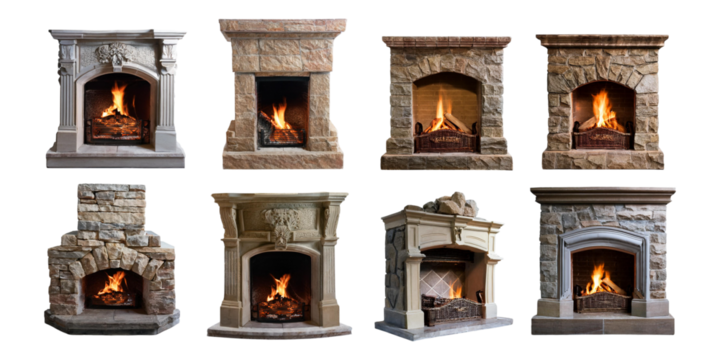 Variety of Elegant Fireplace Designs,PNG set collection, isolated on transparent background