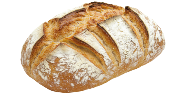 Artisanal Whole Wheat Loaf of Bread with a Golden Crust and Flour Dusting on a Transparent Background