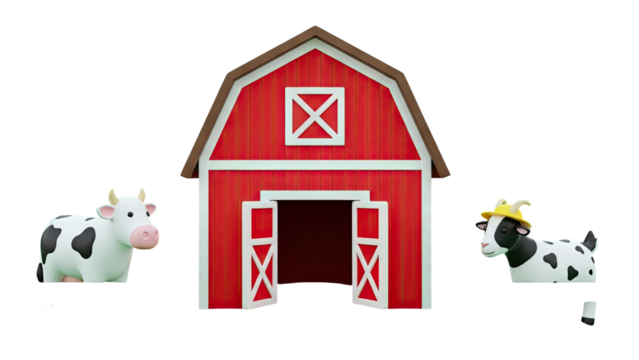 Cartoon Barn and Cows