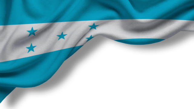 Vibrant flag of Honduras waving in the wind, showcasing its blue and white colors with five stars, symbolizing unity