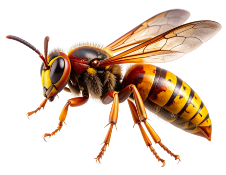 Hornisse in realistischer Seitenansicht mit ausgebreiteten Flügeln – Generative AI PNG