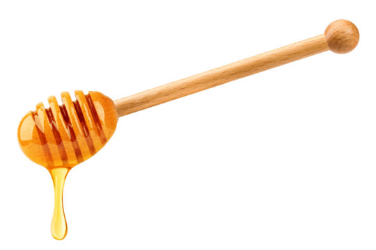 Honey dipper with golden honey on a transparent background