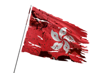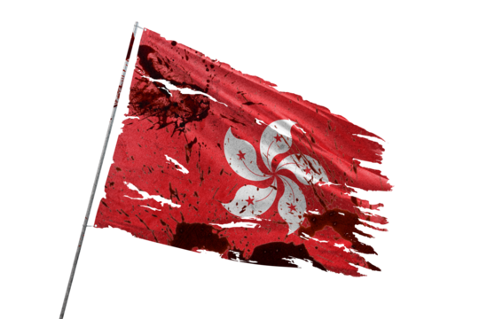 colorful flag of hong kong  with white red  color holi paint powder explosion isolated white background. asia national asian travel and tourism concept.