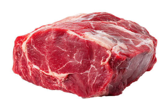 Raw beef chuck roast with marbling isolated on transparent background. Close-up raw beef ribeye steak marbled with fat isolated on white background.