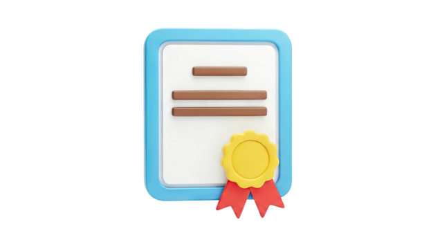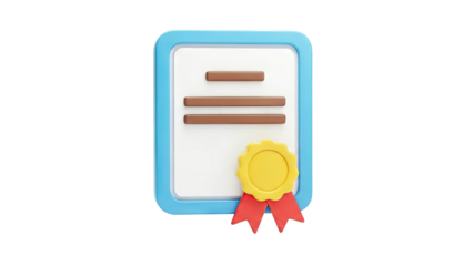 Three rolled diplomas or certificates tied with red satin ribbons isolated on transparent background