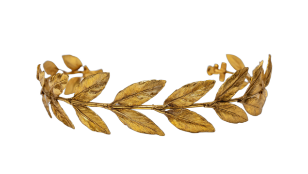 Golden laurel wreath, symbol of victory, honor, and achievement, isolated on transparent background