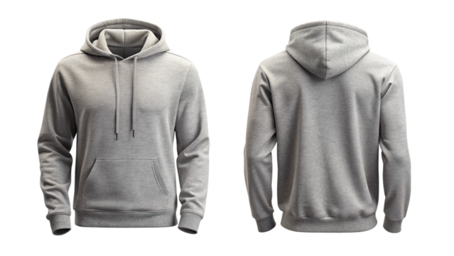 Gray hoodie front and back mockup isolated PNG on transparent background