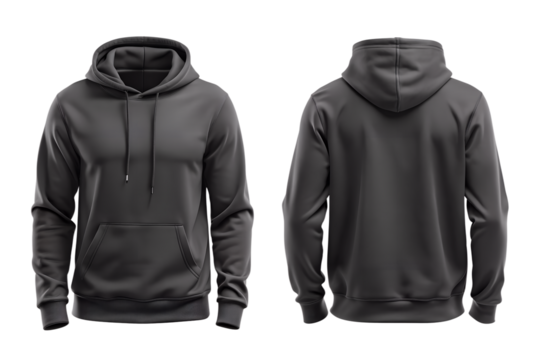 black hoodie template, front and back view, isolated on a transparent background. png format