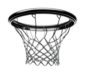Serene Silhouette: Basketball Ball in Hoop. On a White or Clear Surface PNG Transparent Background.
