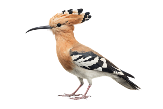 Hoopoe bird full body isolated on a white background, a unique bird with a distinctive crown
