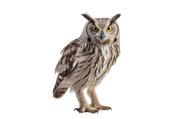 Realistic owl standing, detailed on a transparent background