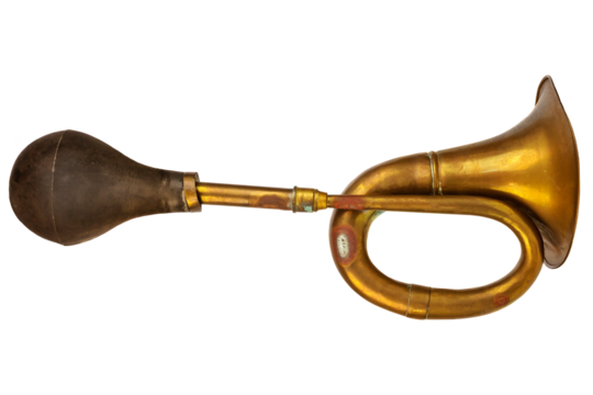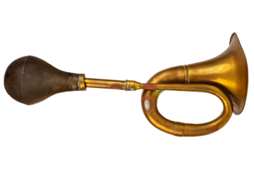 Shiny metal bulb trumpet or bike horn isolated on white background.