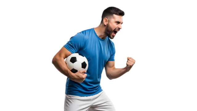 Transparent background nervous soccer player expressing hope