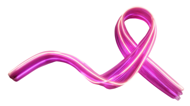 Glowing pink ribbon loop abstract light trail on black background representing breast cancer awareness hope strength and modern healthcare support