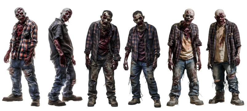 Realistic Zombie Horde Isolated on Transparent Background - Perfect for Horror Projects