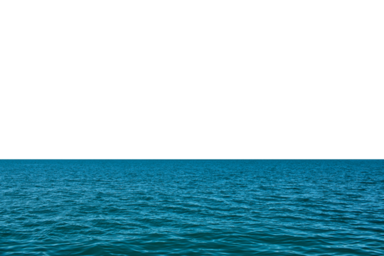 Blue ocean water surface with gentle waves and ripples. Isolated on transparent background, png