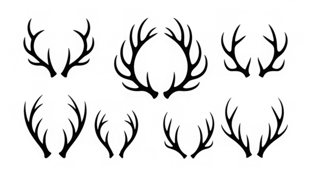 Set of antlers vector illustration. Collection of black deer antlers and horns silhouette isolated on white background. Design suitable for sticker, card, comic, print, poster, logo, decoration.