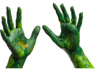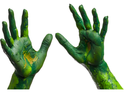 Two scary green zombie hands isolated on transparent background. Ideal for Halloween posters, horror themes, and spooky graphic compositions.