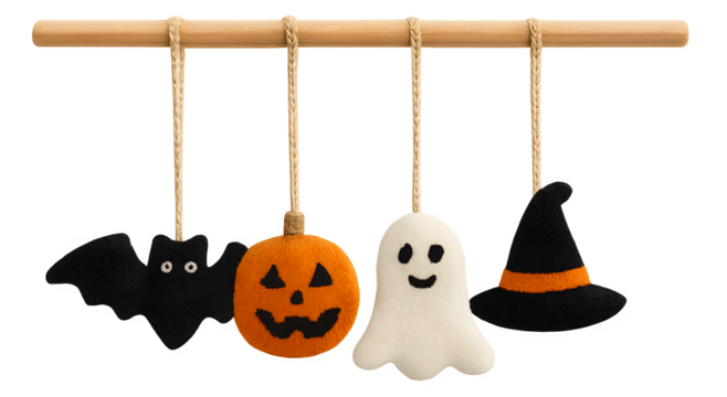 A Halloween themed decoration with a bat, pumpkin, ghost