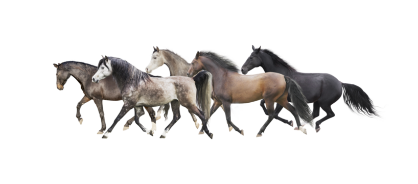 Herd of horses running , isolated without background