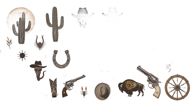 Western Design Elements Cowboy Hats, Cacti, Guns, More!