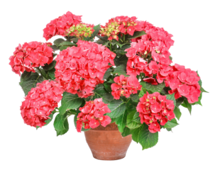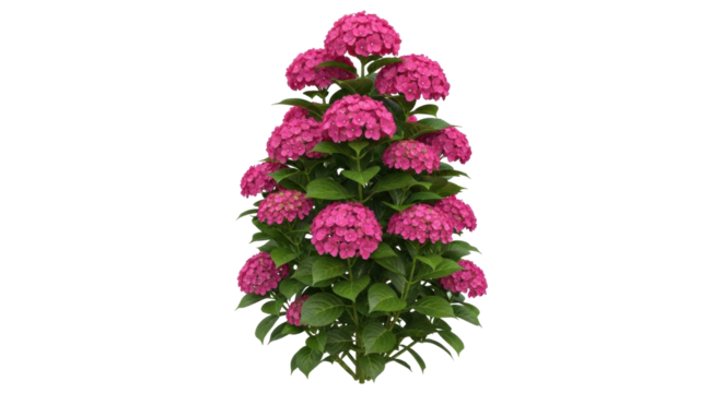 Isolated Hydrangea flower shrub blossom, pink head inflorescence, gardening flowering plant