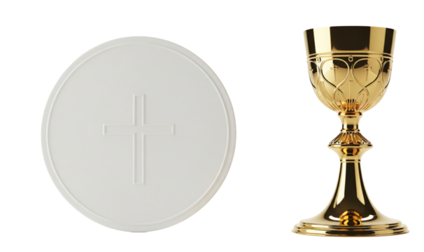 Religious Symbols of Communion A Golden Chalice and a White Wafer with a Cross