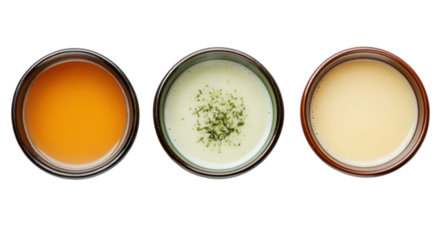 Woman enjoying herbal green tea with transparent background