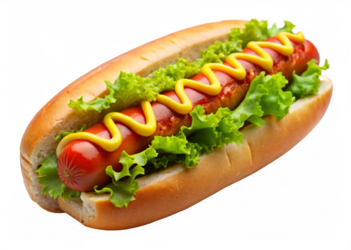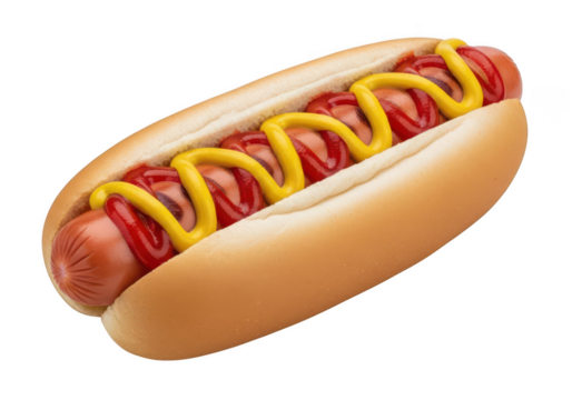hotdog png, classic street food, grilled sausage, bun, mustard, ketchup, hotdog clipart, fast food, transparent background, culinary illustration, savory snack