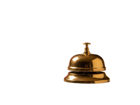 Golden service bell with polished finish and classic design isolated on transparent background