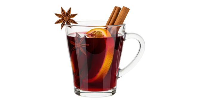 A glass mug of hot chocolate with marshmallows, isolated on a white isolated on a white isolated on a transparent background in PNG format.