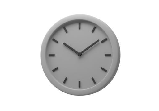 Isolated Gray Wall Clock with Dark Hands on a Black Transparent Background