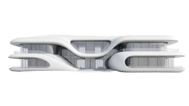 White house with a lot of windows and a balcony. isolated illustration on transparent background