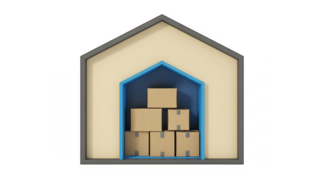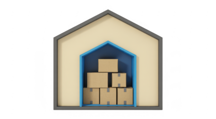 House with Cardboard Boxes Inside storage moving house shape isolated on a transparent background