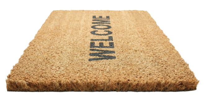 Welcome doormat offering hospitality and greeting guests at the entrance of a home or business, transparent background