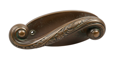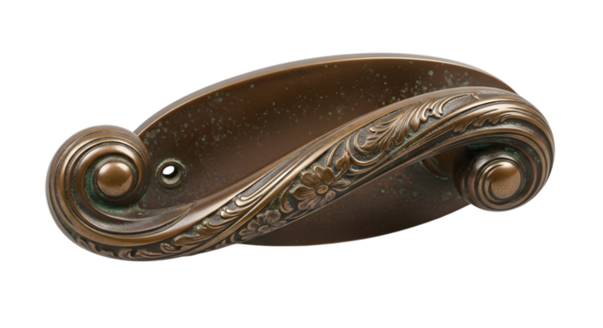 Antique bronze door handle isolated on white background with floral pattern