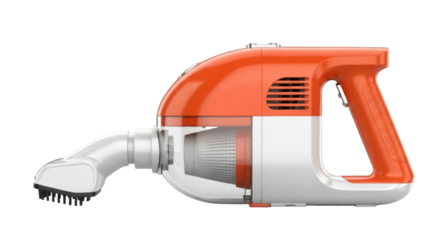 Isolated Modern cordless handheld vacuum cleaner for home and vehicle use. Housekeeping device