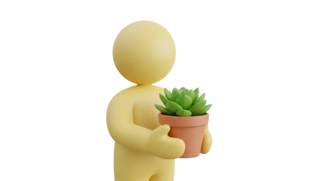 Isolated 3D stylized person holding a potted succulent plant, giving gift for housewarming