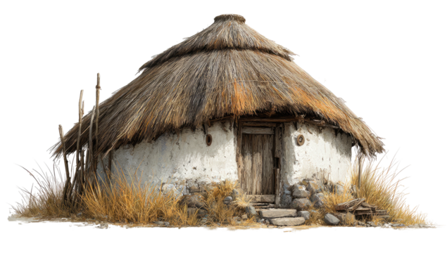 Traditional straw hut architecture rural setting png with transparency background for design projects