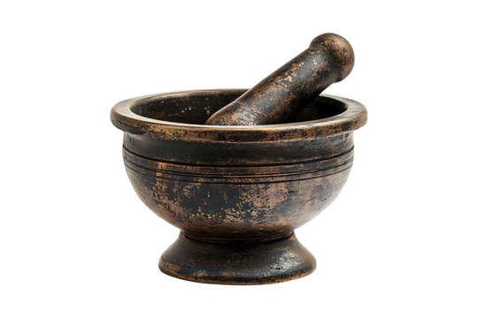 Old bronze mortar and pestle isolated on transparent background