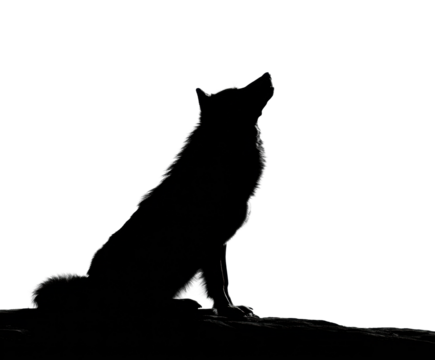A majestic wolf howling against a black background, showcasing its strength and wild spirit. Isolated on transparent white background, png