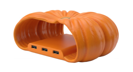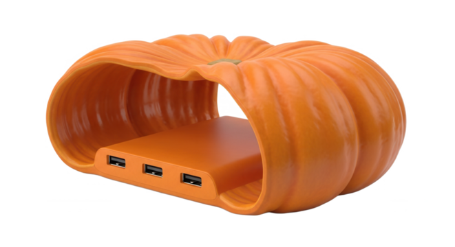 Pumpkin-shaped USB hub in vibrant orange color with three ports