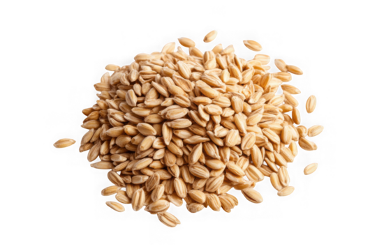 Pile of hulled barley seeds grains agriculture food ingredient cereal crop nutrition healthy eating isolated on transparent background