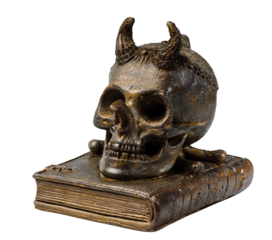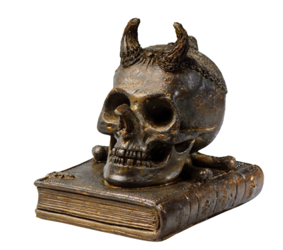 crâne humain et livre sur fond transparent