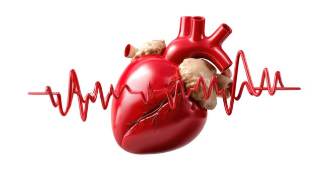 Anatomical heart model isolated PNG on transparent background, detailed medical visualization for educational and healthcare purposes