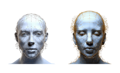 Transparent holographic bust reflecting rainbow colors on transparent background