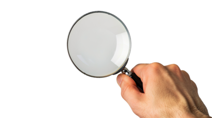 Focus on Discovery: A human hand firmly grasps a magnifying glass, symbolizing keen observation and the pursuit of knowledge and research. Capturing the essence of clarity and analysis.