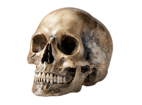 Detailed human skull isolated on a stark backdrop capturing the essence of anatomy and mortality