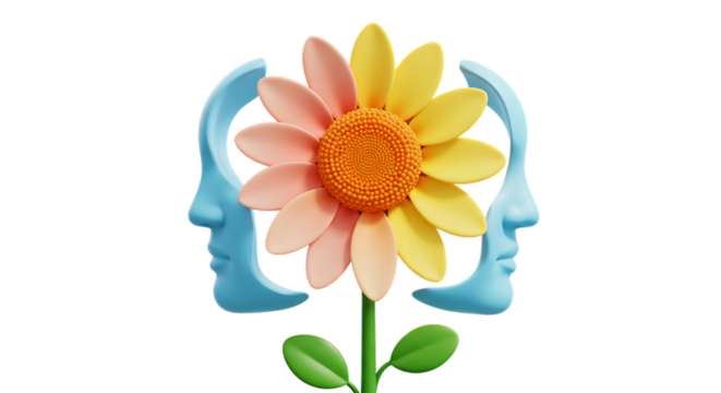 3d quiet mind app icons two blue human faces with a flower in between isolated on transparent background